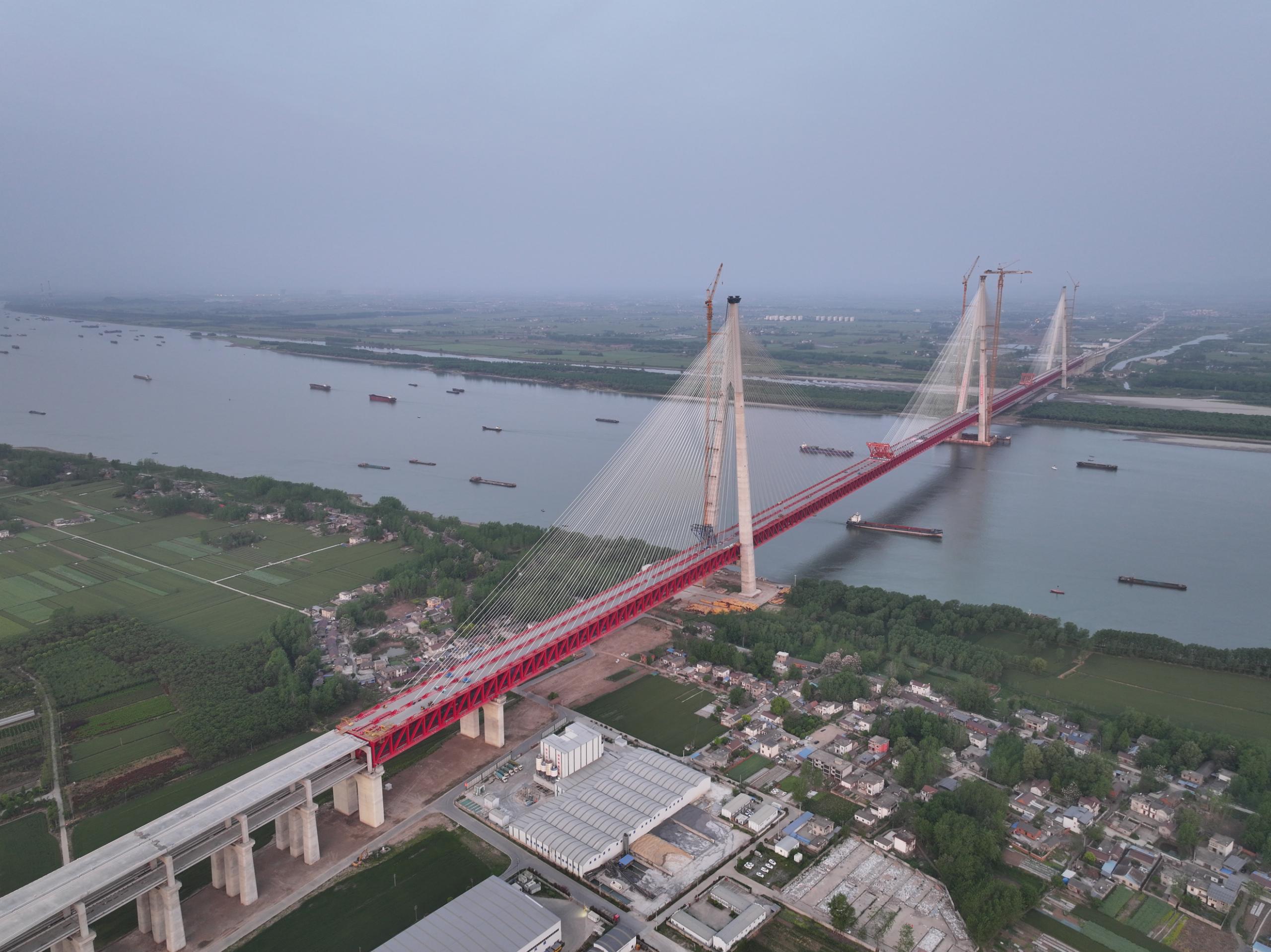 張靖皋長(zhǎng)江大橋南航道橋南主塔中橫梁成功合龍