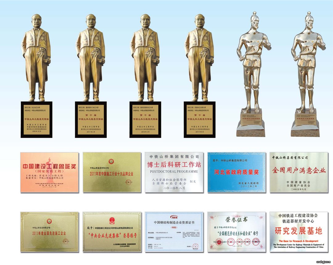 中鐵山橋曾榮獲全國五一勞動獎狀、全國模范勞動關系和諧企業、全國先進施工企業、全國質量管理先進單位、中國施工行業十大品牌企業、中央企業先進集體和國家科技進步特等獎、國家優質工程金獎、魯班獎、詹天佑獎。被中組部、河北省委命名為先進基層黨組織。