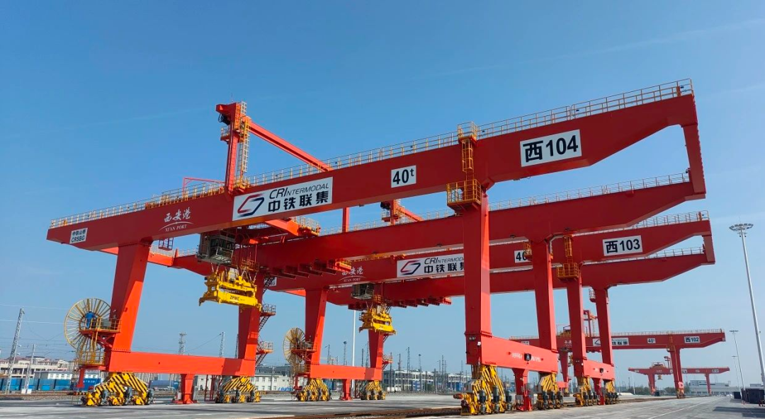 西安鐵路集裝箱中心站是現代化鐵路場站,位于西安市東北郊的國際港務區內,是西安市規劃的倉儲物流核心區,與鐵路樞紐北環線新筑車站接軌。據國鐵集團統計,今年1-10月,中歐班列(西安)開行4354自然列,增長32.5%,開行量穩居全國第一。從2009年至今,15年間,中鐵山橋為西安鐵路集裝箱中心站提供了多臺40噸軌道式集裝箱門式起重機,為場站擴能發展、優質提效做出了突出貢獻,助力“一帶一路”中歐班列跑出“加速度”。